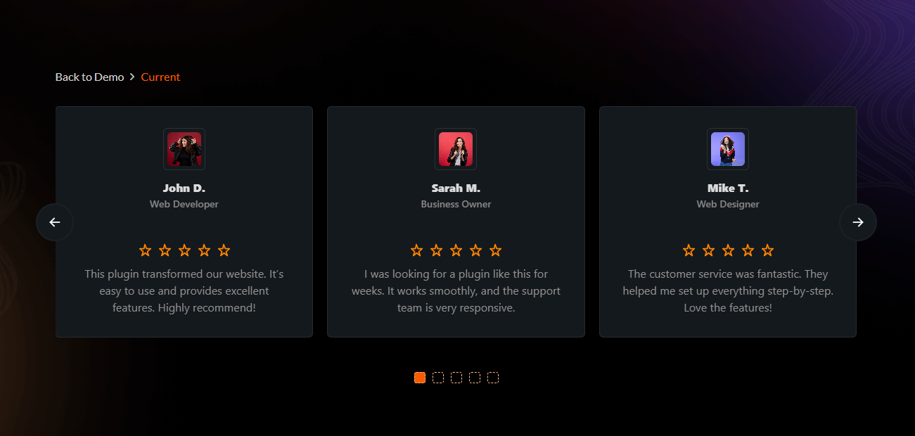 Showcase customer testimonials and reviews with star ratings, author photos, and social proof elements to boost conversions and build trust.